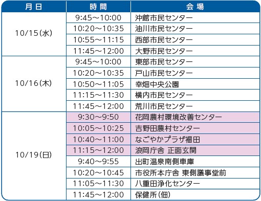 ◇令和7年度秋・狂犬病予防集合注射日程一覧