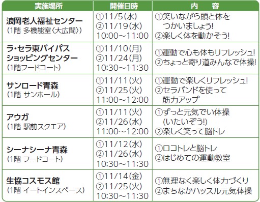 (2)12/5(金) 10:00~12:00(9:30~ 受付)…浪岡総合保健福祉センター 機能回復訓練室