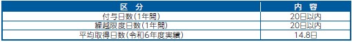 (注)平均取得日数は、令和6年度中に育児休業、休職または停職期間のある職員及び中途採用、中途退職、派遣期間のある職員は含みません。