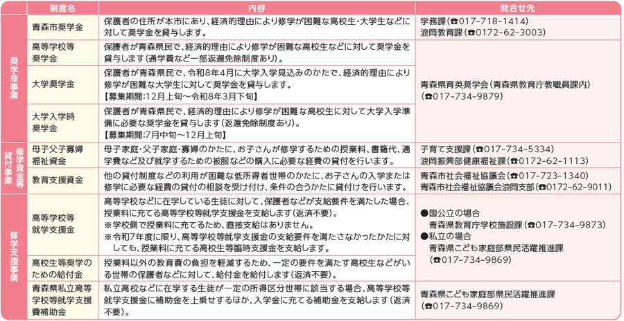 小・中学校の児童・生徒の学用品費、新入学学用品費、修学旅行費などの一部の費用を援助します。