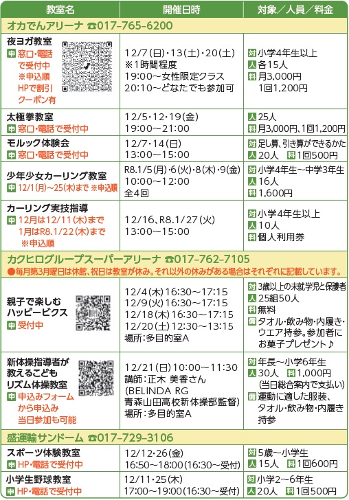 申込み・問合せ:12/18(木)までに、あおもり親子はぐくみプラザ(土・日、祝日を除く)へ