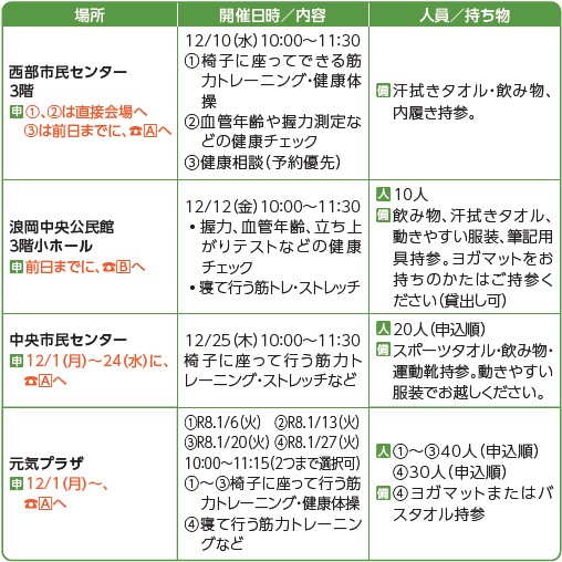 内容:骨・関節・筋肉などを鍛えてロコモを予防する運動など