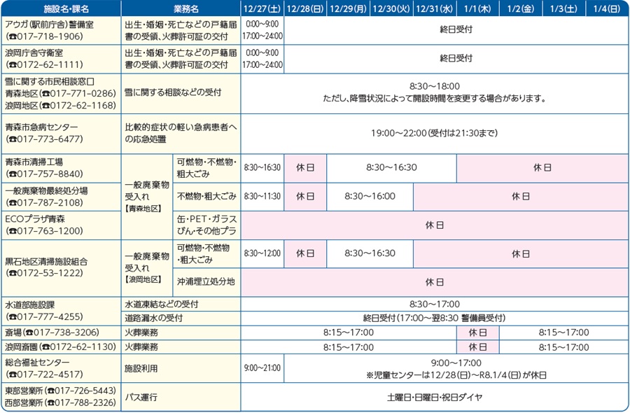 ・浪岡地区…12/31(水)~R8.1/4(日)
