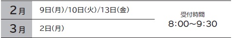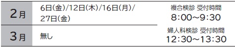 2月から3月までに行われる健診の日程をお知らせします。まだ健診を受診していない方は、ぜひお申し込みください