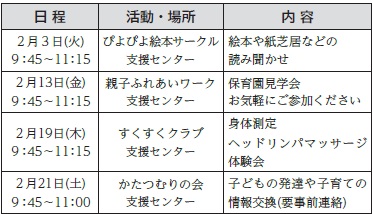 問合せ:平内町こども家庭センター「おひさまひらない」(役場 健康増進課内)