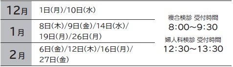 令和7年12月から令和8年3月までに行われる健診の日程をお知らせします。