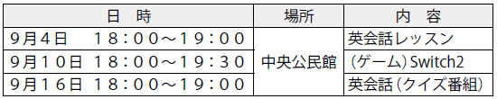 講座 9月英会話のお知らせ 14/27 前の記事 次の記事 発行日 : 2025年09月04日 自治体名 : 青森県今別町 広報紙名 : 広報いまべつ 令和7年9月号 問合せ:今別町教育課 【電話】0174-35-2157 Tweet シェアする 【コナーのコーナー No.24】日本で運転したい! 歴史講座のご案内