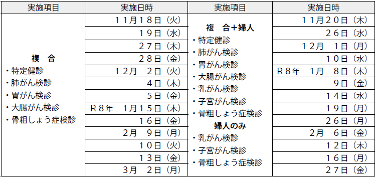 複合のみ:特定健診・肺がん検診・胃がん検診・大腸がん検診・骨粗しょう症検診