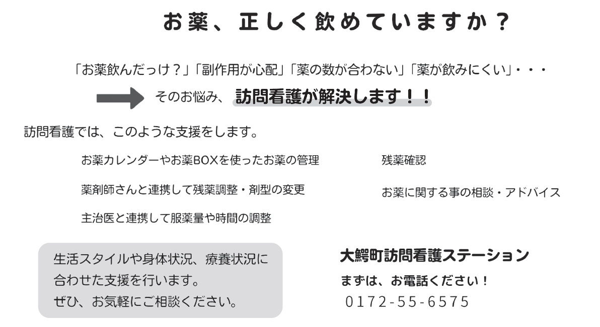 くらし こんにちは! 訪問看護ステーションです Vol.2 30/34 前の記事 次の記事 発行日 : 2026年01月01日 自治体名 : 青森県大鰐町 広報紙名 : 広報おおわに 令和8年(2026年)1月号 Tweet シェアする 中央公民館からのおしらせ 弘前大学生 コラムコーナー