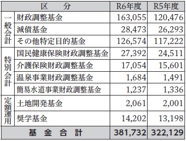 一般会計の基金、特別会計の基金、定額の資金を運用する基金に区分しております。町全体の基金(貯金)残高は、町民一人当たり381,732円となっております。