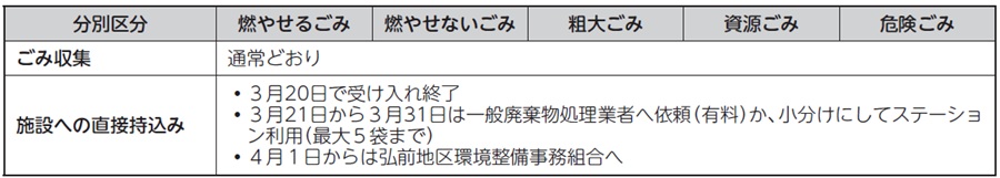 令和8年3月21日から3月31日までの期間に施設への持ち込みを考えている方は、一般廃棄物処理業者へ依頼(有料)するか、小分けにしてステーションへ排出するようお願いいたします。