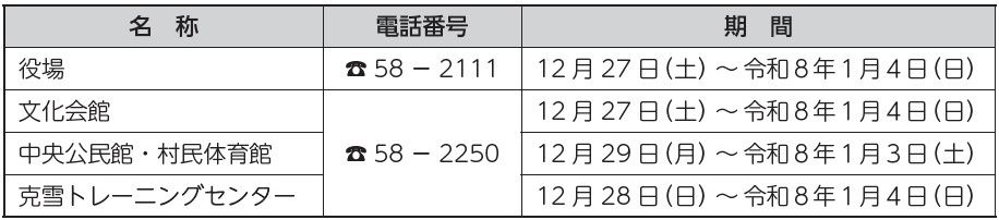 ■各施設の年末年始休業