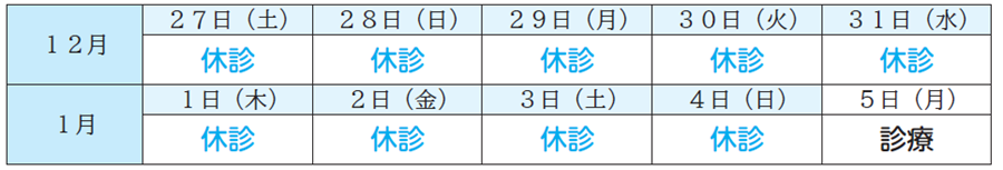 ※12月27日(土)より1月4日(日)まで、年末年始のため休診といたします。なお、救急患者については随時受付いたします。