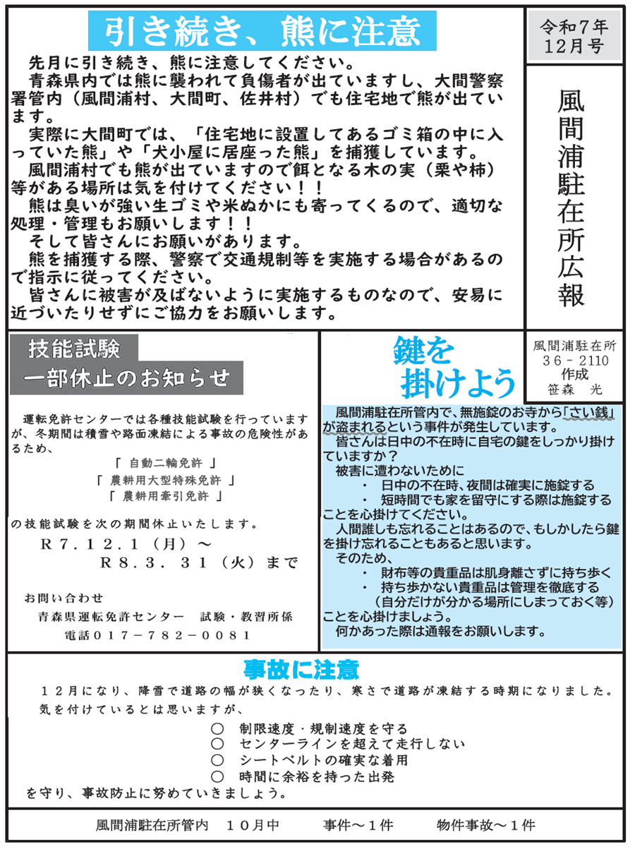 くらし 風間浦駐在所広報 16/22 前の記事 次の記事 発行日 : 2025年12月10日 自治体名 : 青森県風間浦村 広報紙名 : 広報かざまうら 2025年12月号 Tweet シェアする 大間病院だより 健康だより