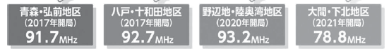 青森放送のFM局は、青森・弘前地区(91.7MHz)、八戸・十和田地区(92.7MHz)、野辺地・陸奥湾地区(93.2MHz)、大間・下北地区(78.8MHz)でお聴きいただけます。