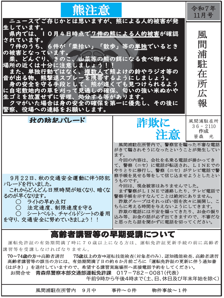 くらし 風間浦駐在所広報 19/25 前の記事 次の記事 発行日 : 2025年11月12日 自治体名 : 青森県風間浦村 広報紙名 : 広報かざまうら 2025年11月号 Tweet シェアする 大間病院だより 健康だより