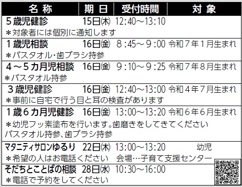 子育て 子育て応援だより 10/17 前の記事 次の記事 発行日 : 2025年12月15日 自治体名 : 岩手県久慈市 広報紙名 : 広報くじ 令和7年12月15日号 No.475 利用対象:未就学児と保護者 利用料:無料 開館時間:8時30分~17時 (土曜日…8時30分~12時) 休館日:土曜日の午後、日・祝日 ■季節のあそび「みずき団子づくり」 みんなで一緒にお団子を作ろう! 会場・問合せ:子育て支援センター 【電話】52-3210 Tweet シェアする 乳幼児健診・相談 年金相談(要予約)