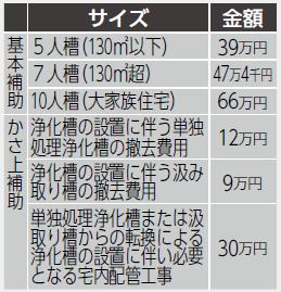 対象…公共下水道の事業認可区域や漁業集落排水事業区域を除いた地域で、住宅や店舗兼住宅に浄化槽を設置する人