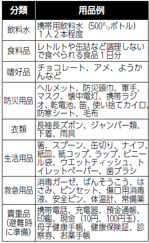 全ての避難場所や避難所に十分な備蓄はされていません。災害時には、支援物資がすぐに届かない場合もあります。避難時に困らないために、自分の非常持ち出し袋を準備しましょう。