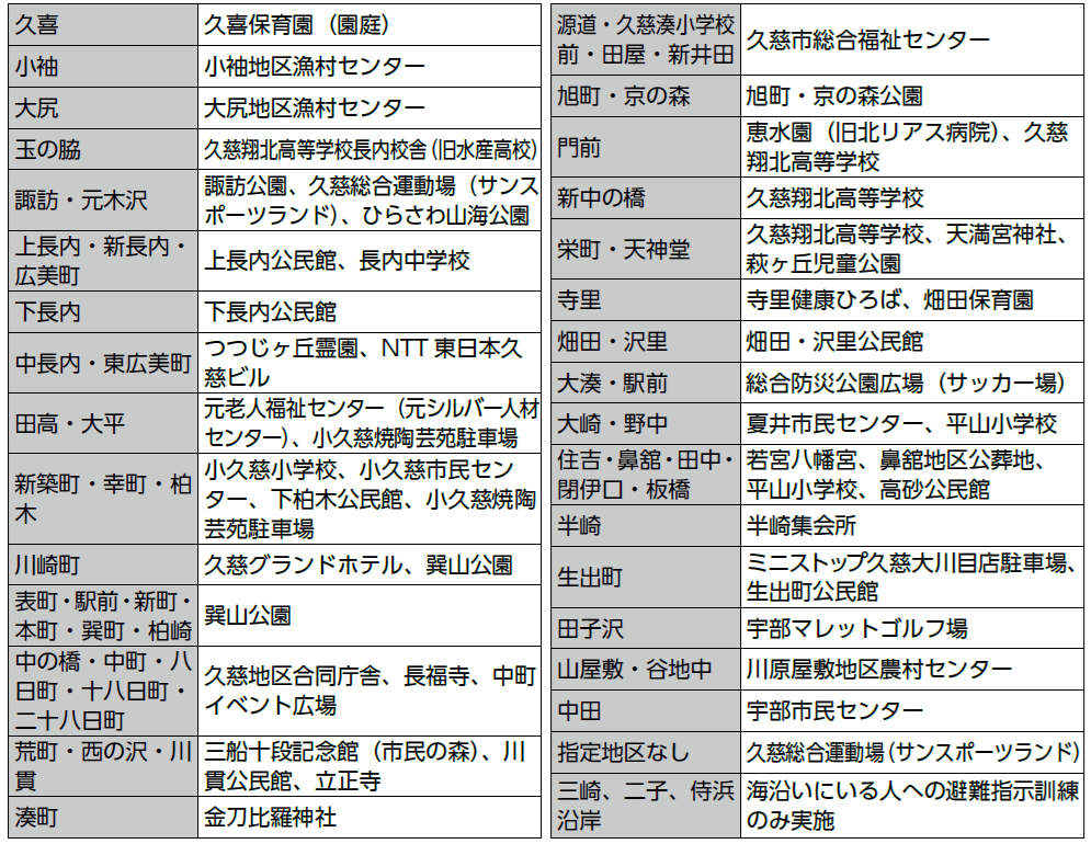 ※地区ごとの避難場所は目安です。最寄りの避難場所に避難してください