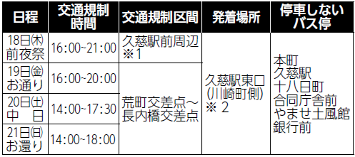 久慈秋まつりの交通規制に伴い、久慈駅発着のバス乗降場は、久慈駅東口(川崎町側)に変更します。