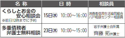 ■要予約(予約:消費生活センター【電話】54-8004)