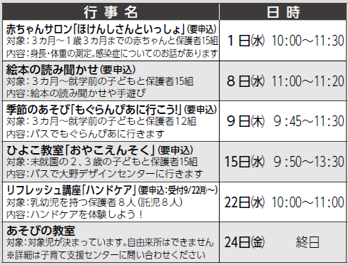会場・問合せ:子育て支援センター