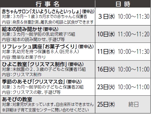 子育て 子育て応援だより 9/18 前の記事 次の記事 発行日 : 2025年11月15日 自治体名 : 岩手県久慈市 広報紙名 : 広報くじ 令和7年11月15日号 No.473 利用対象:未就学児と保護者 利用料:無料 開館時間:8時30分~17時 (土曜日…8時30分~12時) 休館日:土曜日の午後、日・祝日 ■季節のあそび「クリスマス会」 みんなで一緒にクリスマスを楽しもう 会場・問合せ:子育て支援センター 【電話】52-3210 Tweet シェアする 乳幼児健診・相談 年金相談(要予約)