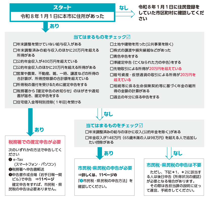 判断に迷う場合は、税務署、本庁市民税課または各支所市民福祉課へ問い合わせてください