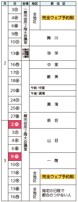 *一関・花泉・大東はウェブ予約制