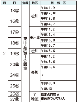 土日祝日や日程表以外の日は申告相談を受け付けません