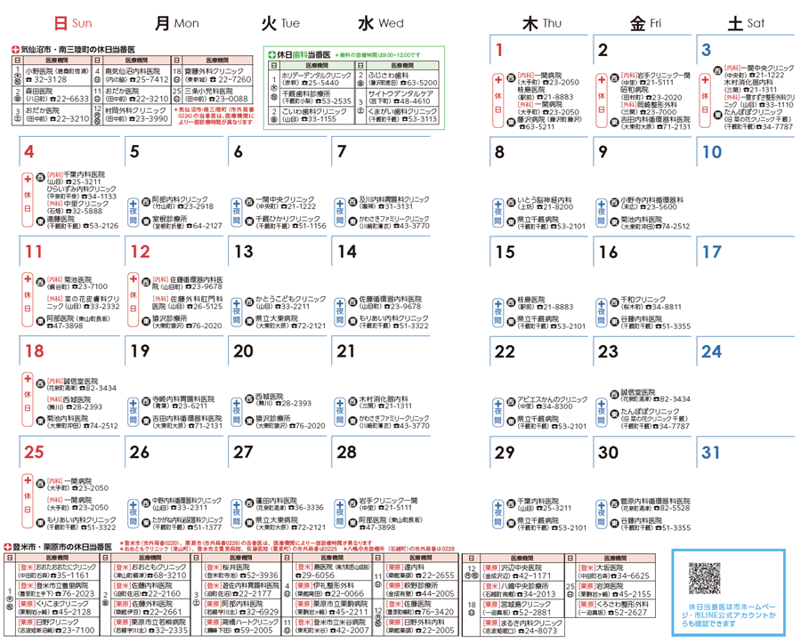(1)当番医は変更になることがあります。電話で確認してから受診してください。