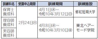 上記以外のコースも開講予定です。ただし、上記以外のコースは一関市以外の訓練施設での開講となります。