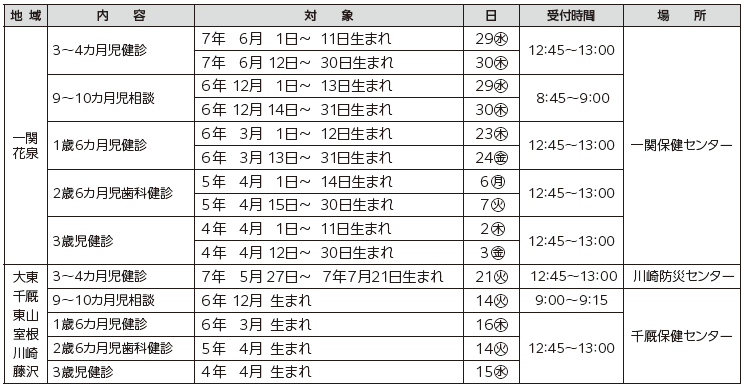 *3~4カ月児健診(大東・千厩・東山・室根・川崎・藤沢地域)は、2カ月に1回の実施になります