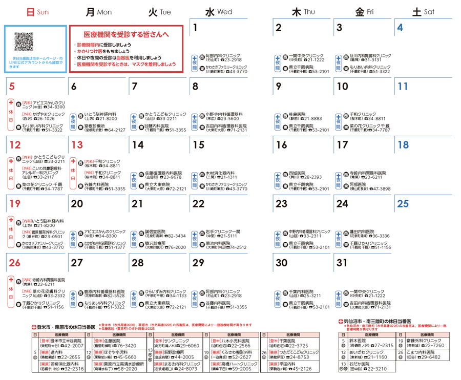 (1)当番医は変更になることがあります。電話で確認してから受診してください。