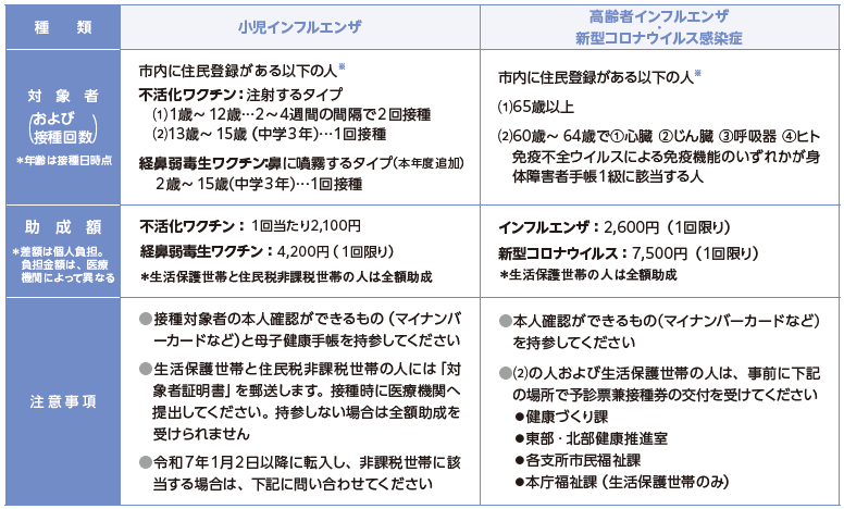 市は、インフルエンザ予防接種と新型コロナウイルス感染症予防接種の費用を一部助成します。