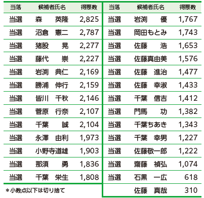 市議会議員選挙の投票は、9月28日、市内の各投票所で18時まで行われ、19時50分から一関ヒロセユードームで即日開票を実施。結果、新人7人を含む26人が当選しました。