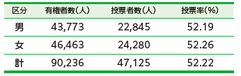 当日の有権者数は9万236人。投票率は52.22%で、前回(令和3年度)の58.62%を6.4ポイント下回りました。