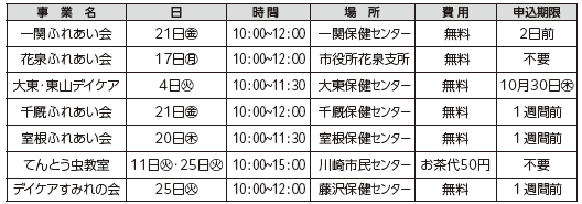 ※費用が無料、どなたでも参加できる、申し込みが不要の場合、費用、対象や申し込み方法を掲載していません