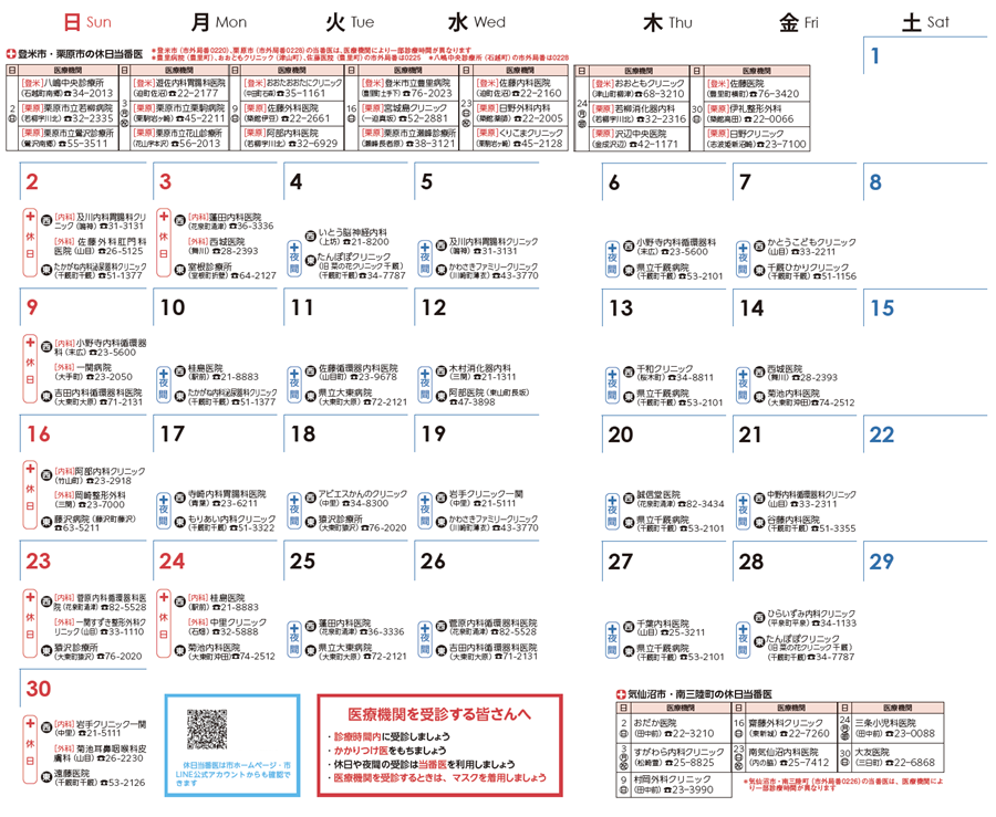 (1)当番医は変更になることがあります。電話で確認してから受診してください。