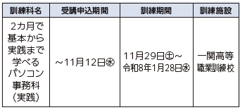 ◆直近のハロートレーニング(公的職業訓練)