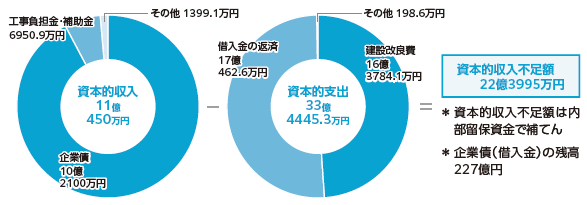 ○水道管や既存施設の更新改修のための費用(資本的収支)