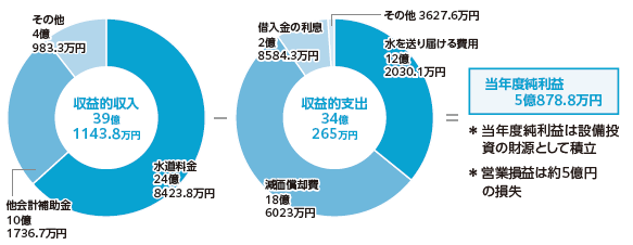 ○水道管や水道施設を維持し、水を送り届けるための費用(収益的収支)
