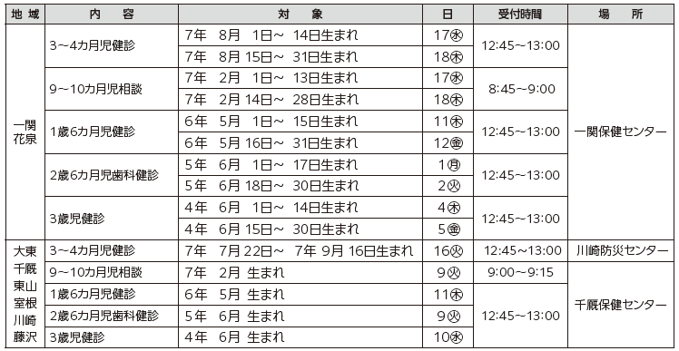 *3~4カ月児健診(大東・千厩・東山・室根・川崎・藤沢地域)は、2カ月に1回の実施になります