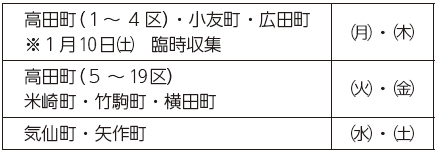 ◇燃えるごみの収集日 ※祝日の場合、収集はありません。