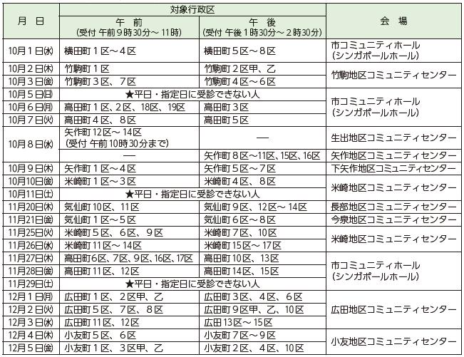 ※混雑を緩和するため、対象行政区を割り振っていますが、指定日に受診できない人は、日程内の都合の良い日に受診してください。