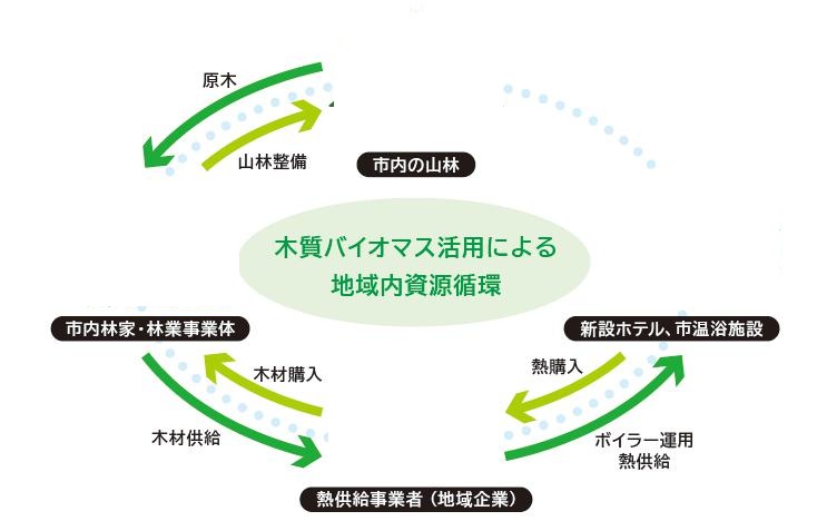 ●木質バイオマスの活用促進…新設ホテル、市温浴施設への薪ボイラー導入推進