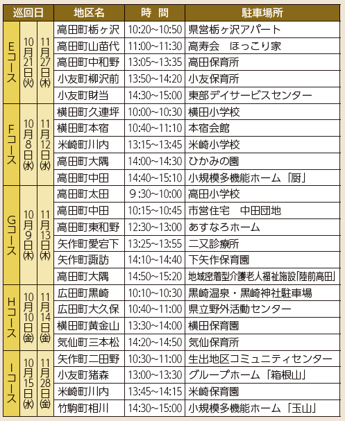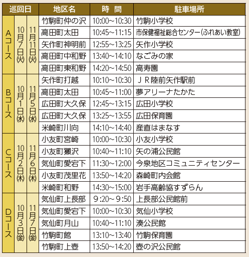 ※悪天候や災害等により、巡回の中止または時間に遅れる場合がございますのでご了承ください。