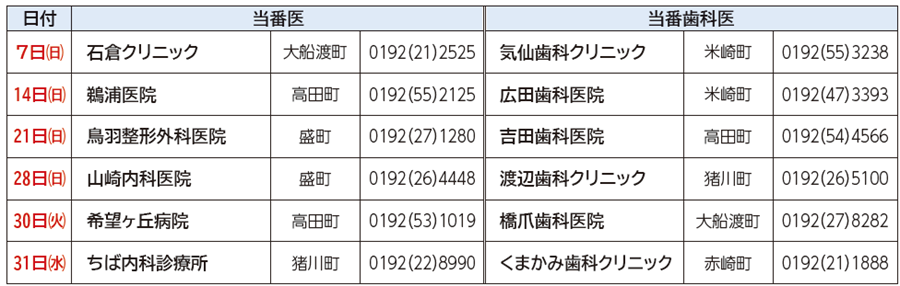 ◆休日当番医・歯科医