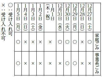 ・土曜日と12月31日は、家庭ごみのみ受け入れます。